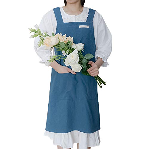 SANIQUEEN.G エプロン ドレスエプロン カフェ ユニフォーム 花屋 リネン 綿 ポケット付き レディース シンプルエ