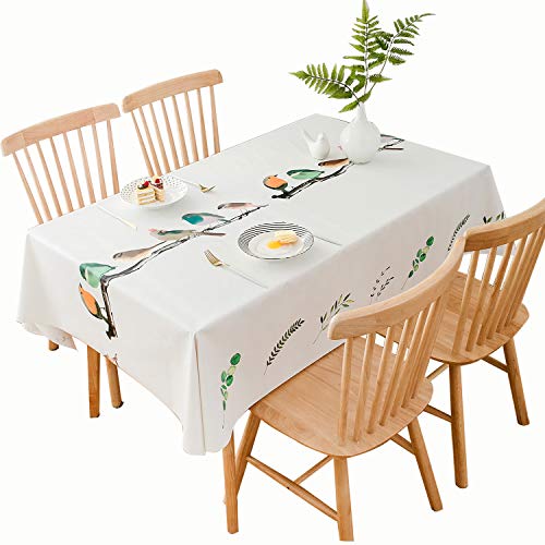 Qualsen テーブルクロス長方形 北欧 テーブルカバー 撥水 防水 防油 PVC製 ホワイト バックグラウンド 137×180cm(鳥