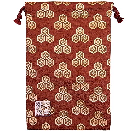 千糸繍院 西陣織 金襴 巾着袋(裏地付き) 唐茶金六角 中サイズ