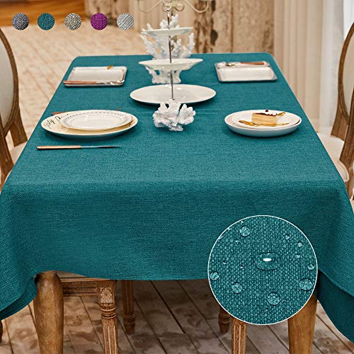 BALCONY&FALCONテーブルクロス 撥水 北欧 無地 類麻 140*240cm(クジャク緑)