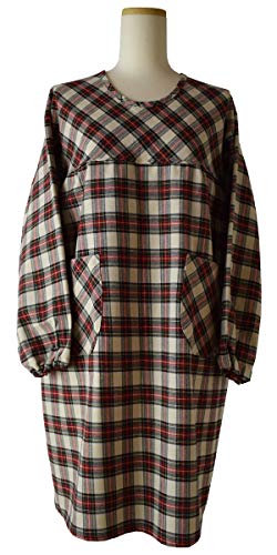 ヨーク割烹着 タータンチェック 日本製 綿 大きいサイズ エプロン(ホワイト×レッド)