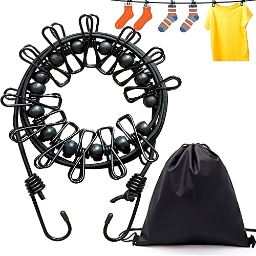 物干しロープ 旅行用 洗濯ロープ キャンプ用 1点セット 12個クリップ付き 旅行用洗濯物干し キャンプ用洗濯干
