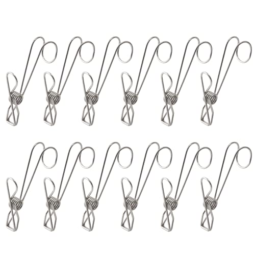 HappyHome 洗濯バサミ フック付き 室内物干し ステンレス シルバー 12個セット かわいい 洗濯ピンチ 飛ばされな