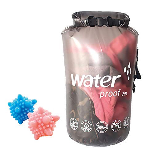 ABINECS 洗濯袋 20L クリーニングバッグ 折り畳み 出張 旅行 手洗い 洗濯ボール付属 (クリアブラック)