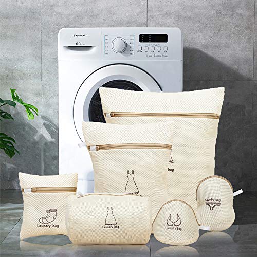 RIXOW 洗濯ネット ランドリーネット 6枚 滑り良いチャック 型崩れ絡みしわ防ぎ ブラ下着 大中小 ベージュ