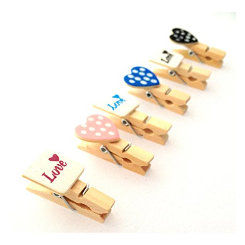 LWRの工芸品木製ミニ洗濯はさみ愛と心24個とジュートコード2.4メートル (B)