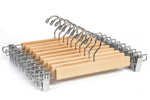Amber Home 天然木製ズボンハンガー 10本組 ナチュラル色 スカートハンガー パンツ ボトムス スラックス シュー