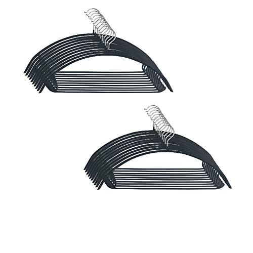 衣類ハンガー すべらない 頑丈 特殊加工 洋服ハンガー 滑り止ハンガー、頑丈 ベーシックハンガー (ブラック