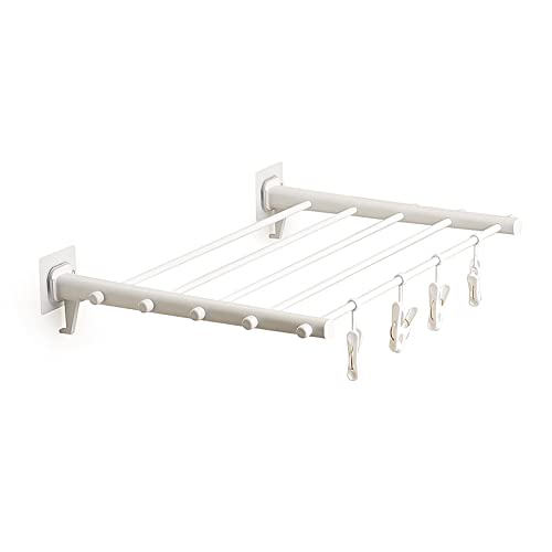 MIGHTYDUTY 室内物干し 室内物干しワイヤー4.2M 伸縮可能物干しラック、180°回転 巻き取り式 壁掛け 洗濯物干し