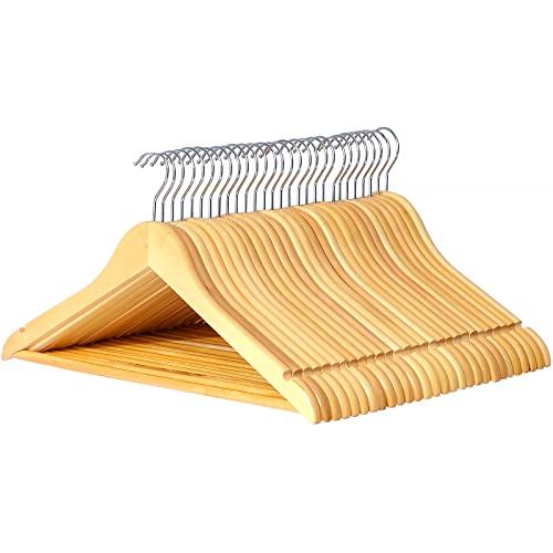 木製ハンガーセット スーツ ジャケット用 肩幅44.5cm 肩厚1.2cm 高さ23cm 天然高級木 (ナチュラル 28本組)