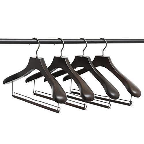 PARACHASE 木製ハンガー セット 4本組 スーツ・ジャケット・コート用 スラックス用バー付 メンズ 男性用 胡桃色