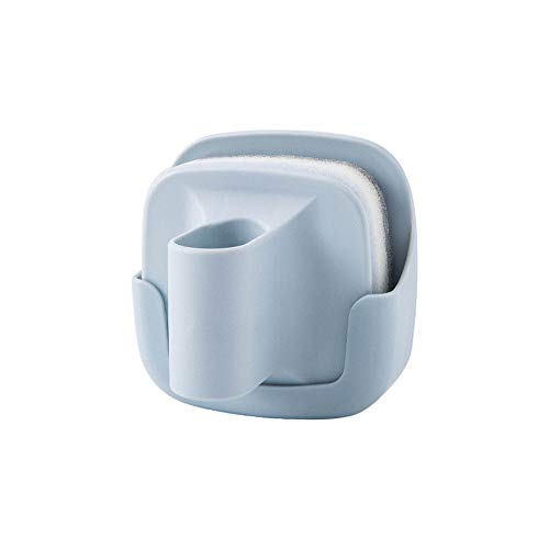 食器洗いブラシ キッチン スポンジ なべブラシ 壁掛け 自着式 クリーニング スクラバー ホーム 用品 (青)