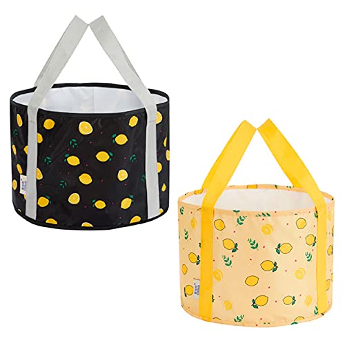[Saki&Masa]保温型 折りたたみバケツ 足湯桶 12L 防災グッズ 収納袋付き レモン柄2個セット (レモン柄)