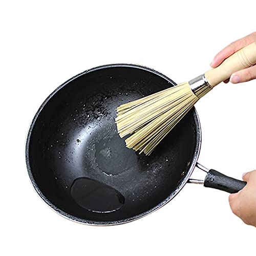 RICISUNG 竹ささら 抗菌鉄フライパン掃除シンクキッチンブラシ台所用品を吊るすことができま 長さは約25 cm、取