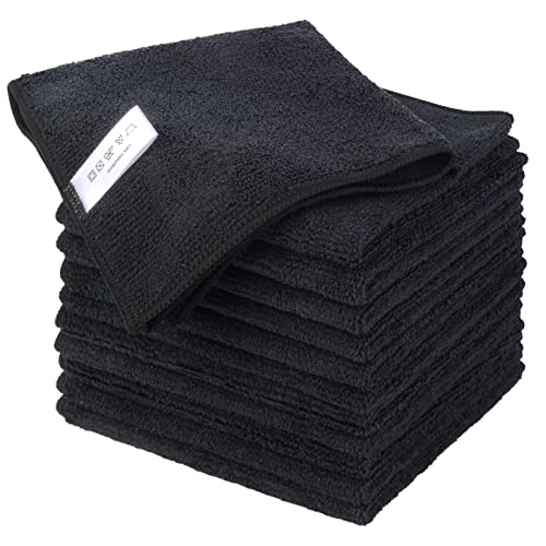 Sinland マイクロファイバー クリーニング クロス ふきん 掃除 タオル (ブラック 30cmx30cm 12枚)