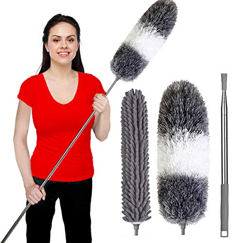 ホコリ取りブラシ 伸縮掃除モップ ZHIWHIS 130cmまで ステンレスロッド付き マイクロファイバー 洗いやすい 360°