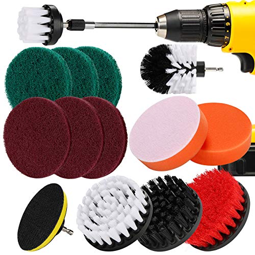 電動ドリル ブラシ 15点セット 電動掃除用ブラシ ポリッシュ用研磨パッド スクラバースポンジ エクステンシ