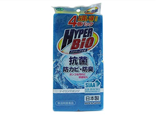 オーエ キッチンスポンジ 約縦12.2×横6.3×高さ3.8cm ハイパーバイオ ハード スポンジ 研磨剤入り 不織布 抗菌 防